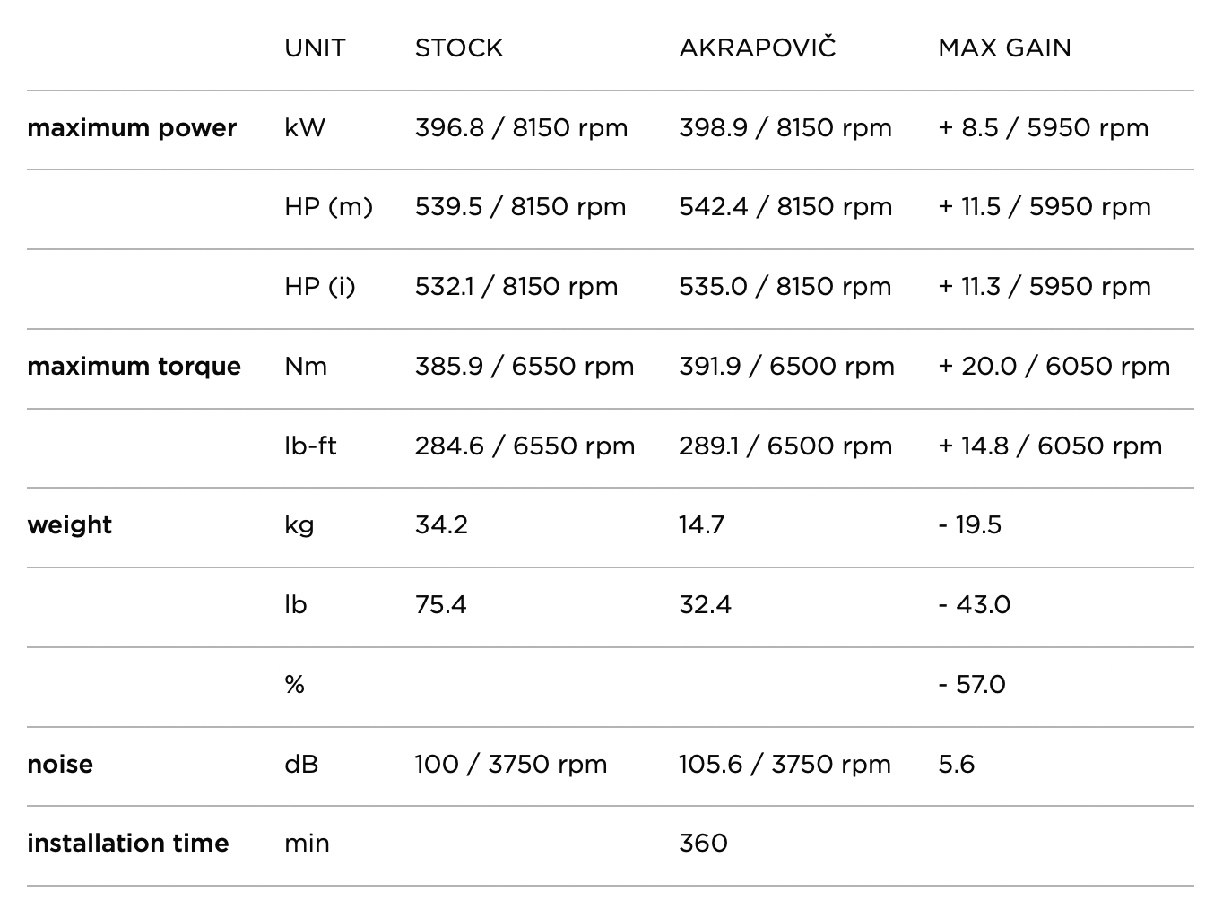 Está acabado con dos tubos de escape de fibra de carbono y titanio exquisitamente elaborados a mano que encajan perfectamente en el difusor de serie del R8. Está ajustado para realzar la nota deportiva del motor V10, al tiempo que garantiza el máximo confort y disfrute en el habitáculo del coche. El tono pasa de un agradable gruñido a bajas revoluciones al exclusivo sonido Akrapovic de competición a medida que suben las revoluciones y crece la emoción.